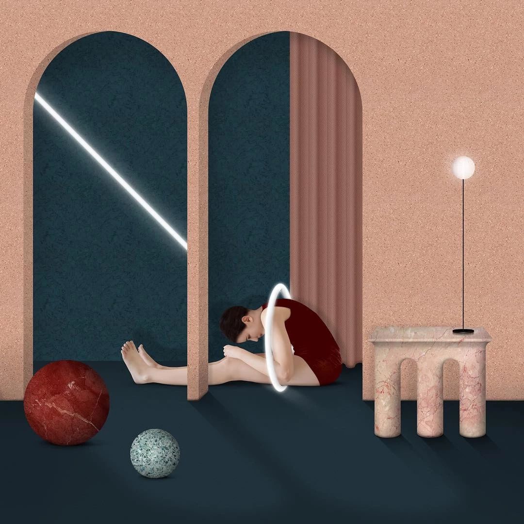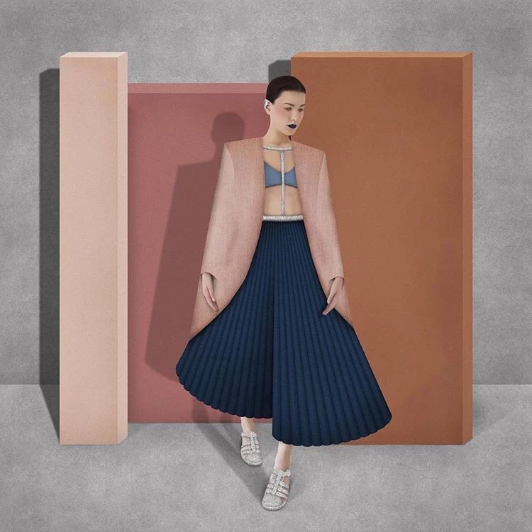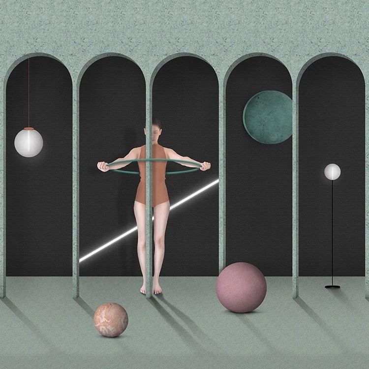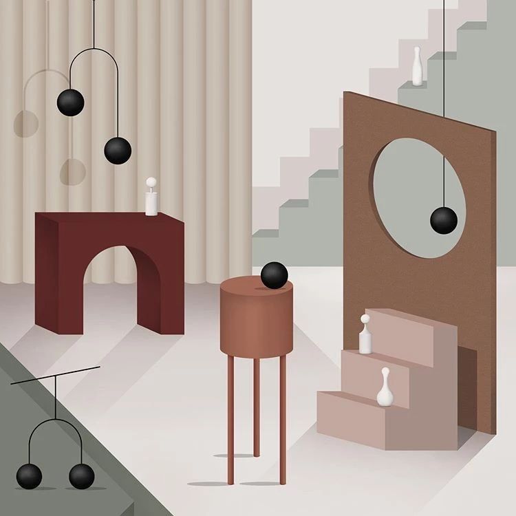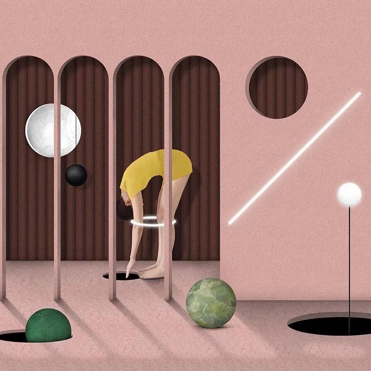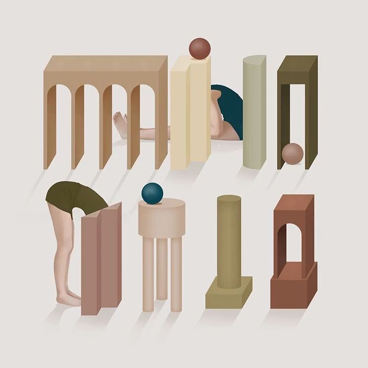 Charitini-Gkritzali来自希腊,是视觉艺术家同时也是建筑师,她的作品配色非常唯美和温柔,通常画面中饱含了人物与几何,她把酒店,天空,河流都处理的很曼妙,色彩饱和度低的同时,画面不至于寡淡。处理手法极为巧妙。