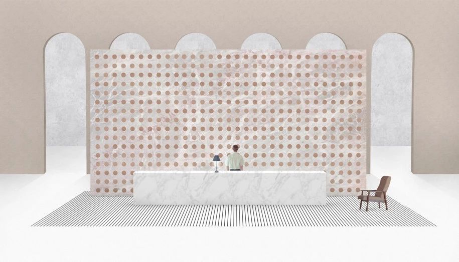她用基本的几何与空间形式表达了他对酒店装饰的理解。