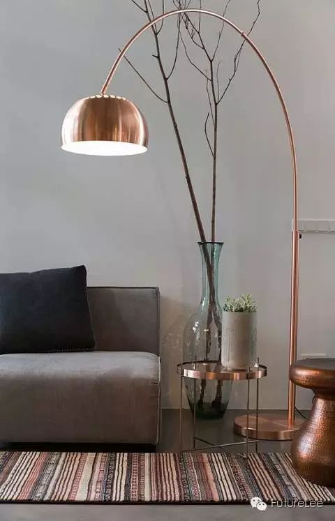 红铜色家具自带复古气质,与灰色沉色系都能融为一体,独特的“轮滑”造型有一种机械怀旧的味道