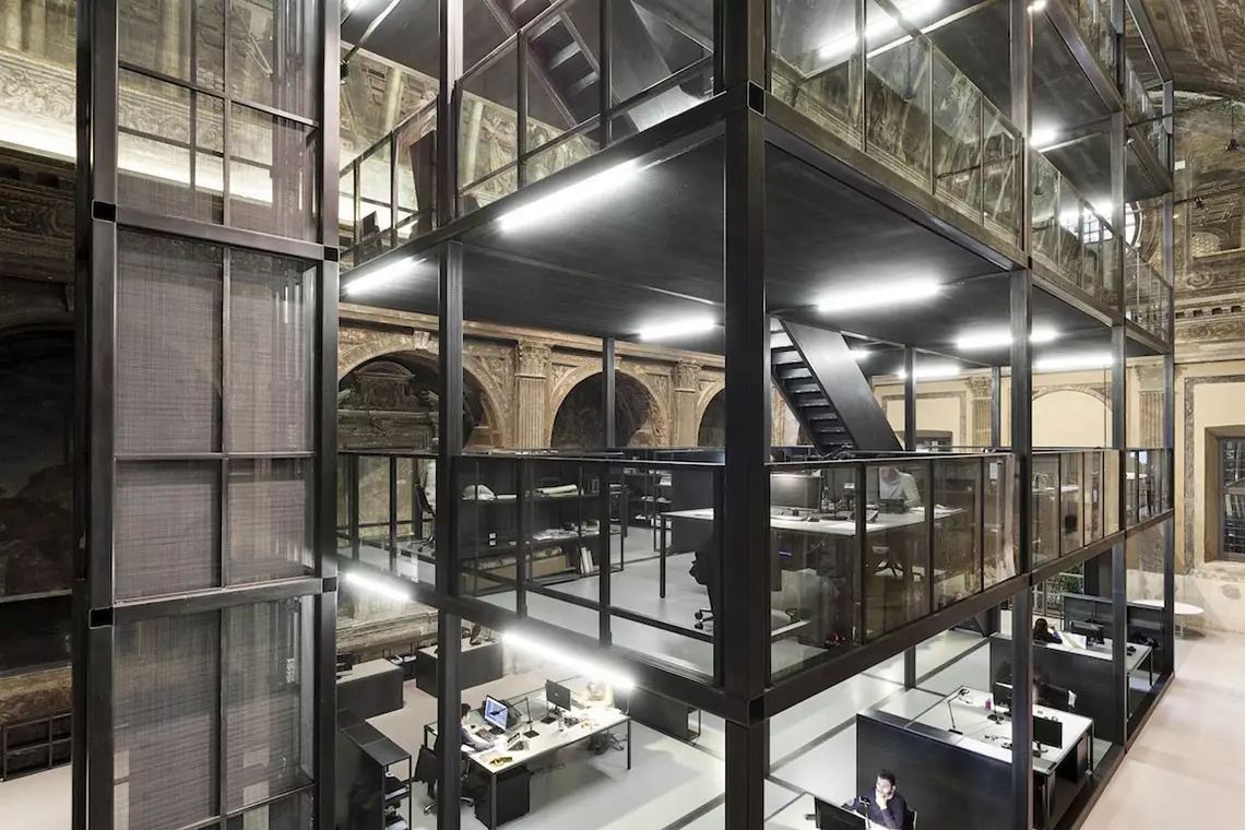 Massimiliano Locatelli的CLS Architetti工作室在米兰的一个十六世纪教会 // Massimiliano Locatelli正在为他的建筑事务所寻找一个新的家园,当他来到米兰的辉煌的16世纪教堂。教会可追溯到十六世纪,由坎皮兄弟的壁画绘画,分为“前教堂”和“后教堂”。接待处位于前教堂的入口处,祭坛区的图书馆和连接两个教堂的区域的第一个会议室。公司的合作伙伴决定将前院教堂作为创意学科的地方,国际客人可以向公众开放展览,表演和安装。