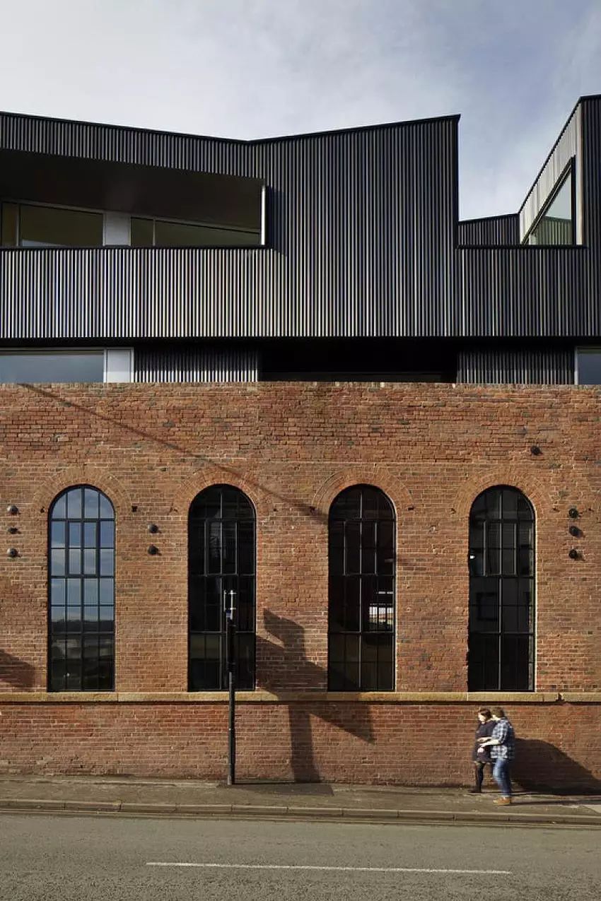 192 Shoreham Street in Shoreham,England by Project Orange //一旦工业区的一座冗余建筑物已经建成了一个双高度的餐厅和酒吧,利用原来的壳。新的延伸是用来支配这个城市这个部分的工业屋顶风景的抽象表达。它在自然界中是寄生的,与主机结构在几个地方,窗户咬入现有的建筑物。新的屋顶轮廓创造了戏剧性的清扫天花板轮廓,粗糙的深灰色长方体形式大大反映在下面更精细的砖立面上。