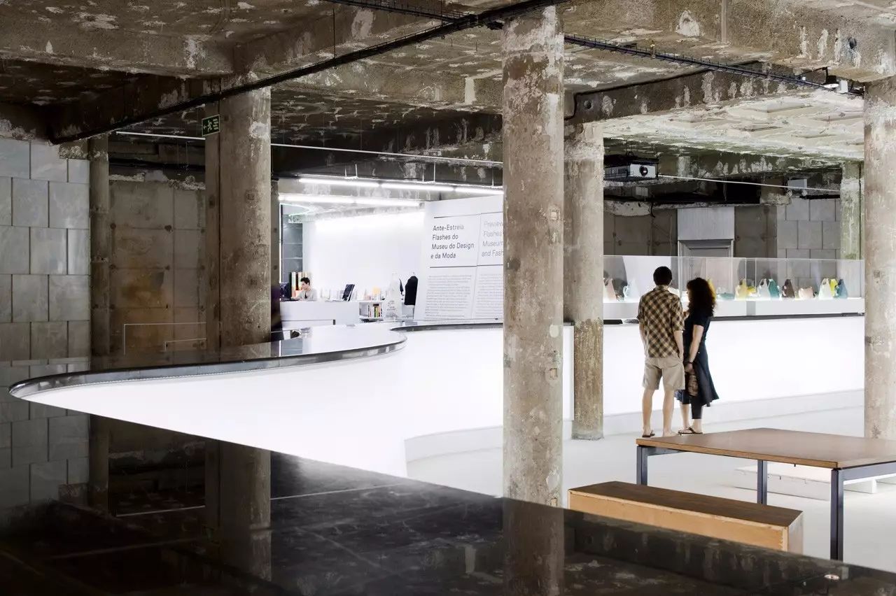 MUDE里斯本设计与时尚博物馆 // MUDE的介入主要是用LIGHT制作的。光的非物质元素被用于提请注意露出的混凝土,最重要的是收集,人造照明围绕一些建筑元素。该项目的进一步特点是暴露的混凝土结构和所使用的工业材料的表现主义。脚手架画布,暗示了街道和托盘,用来显示。地板部分涂上反光漆。设计和时尚物品以非正式的方式占据了空间,与访客建立了密切的关系。
