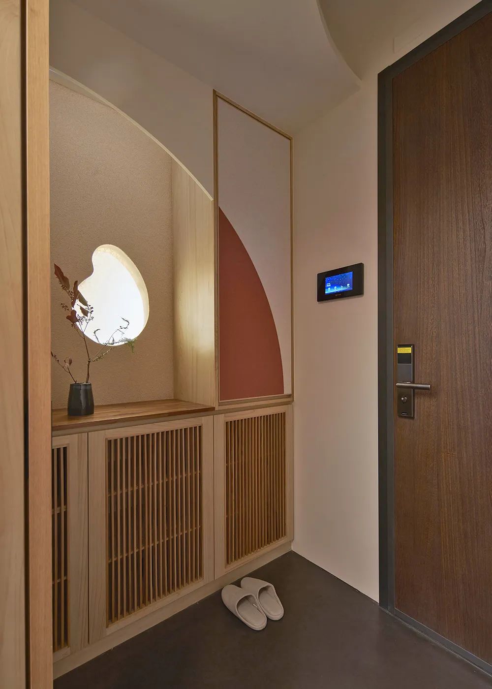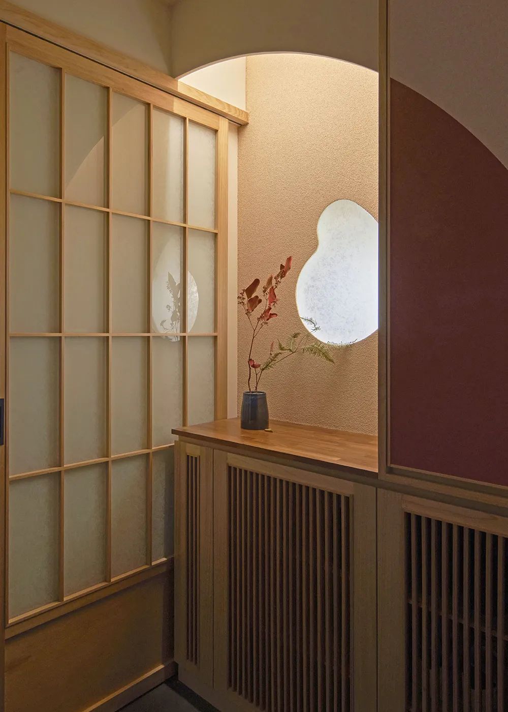 而镶嵌于墙,葫芦形和纸玻璃暗自连结着玄关