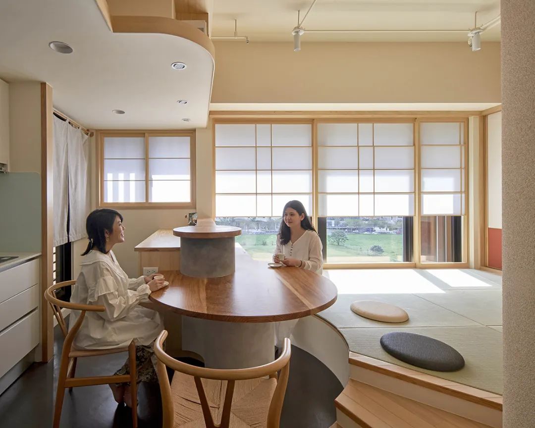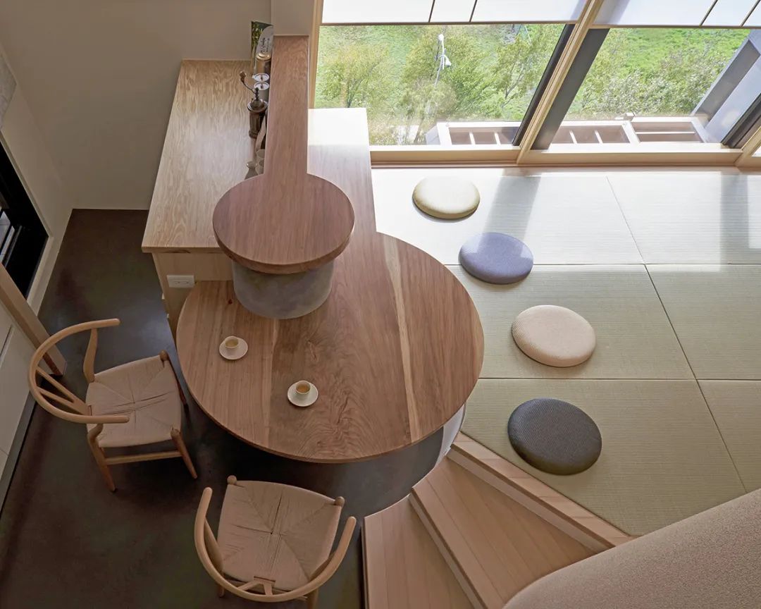 榻榻米相随日本吉野杉圆桌展开完美的弧形曲线