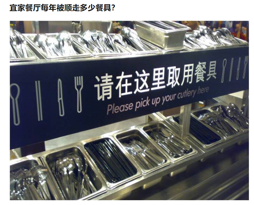 知乎有个很有意思的话题:宜家餐厅每年被顺走多少餐具?