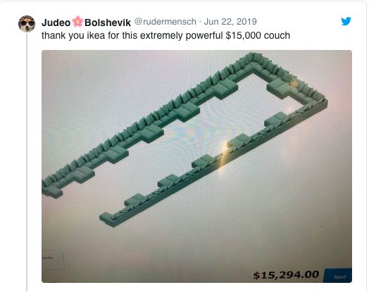 有的全靠以量取胜,“感谢宜家,我组装的这套沙发要15000美金呐”。