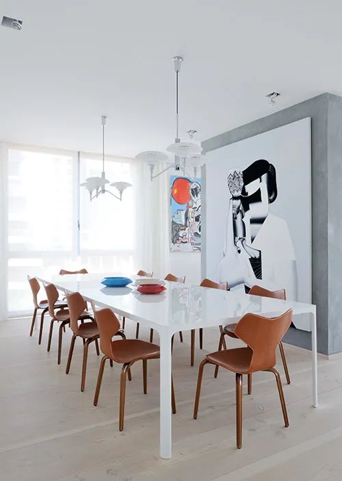 对于这个目标,我求助于斯堪的纳维亚的资料:北欧设计以最少的线条实现了舒适。我以各种可能的方式避免使用重型家具,以免影响令人惊叹的艺术收藏,选择线条优美和/或浅色的物品。
