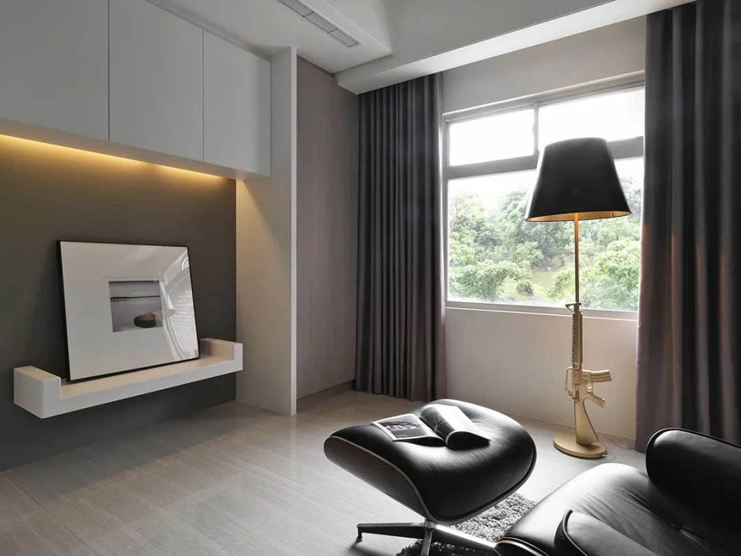 屋主一家人很少看电视,遂舍弃客厅常见的电视墙