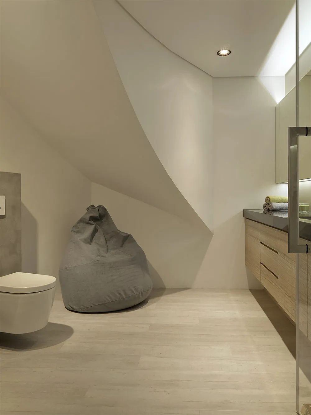 近四分之一弧形楼梯背面化作浑然天成的艺术品