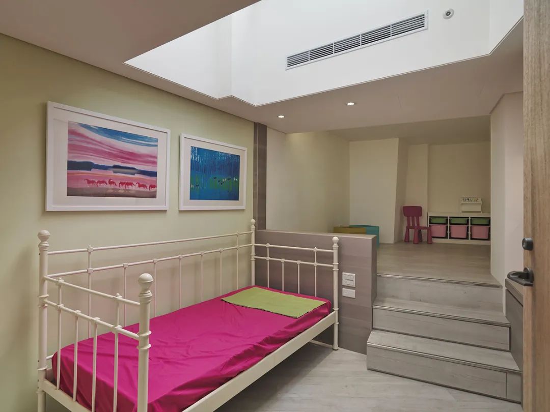 置入ㄇ型床架,台阶上平坦处则是玩耍游戏区