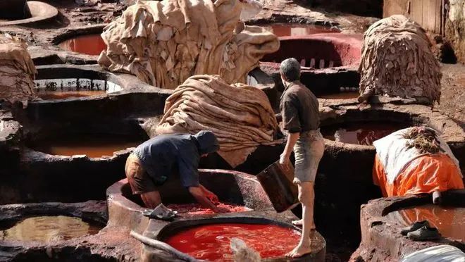 还有最流行的皮革生产:铬鞣皮革,依赖于铬盐和鞣液这样的有毒泥浆;