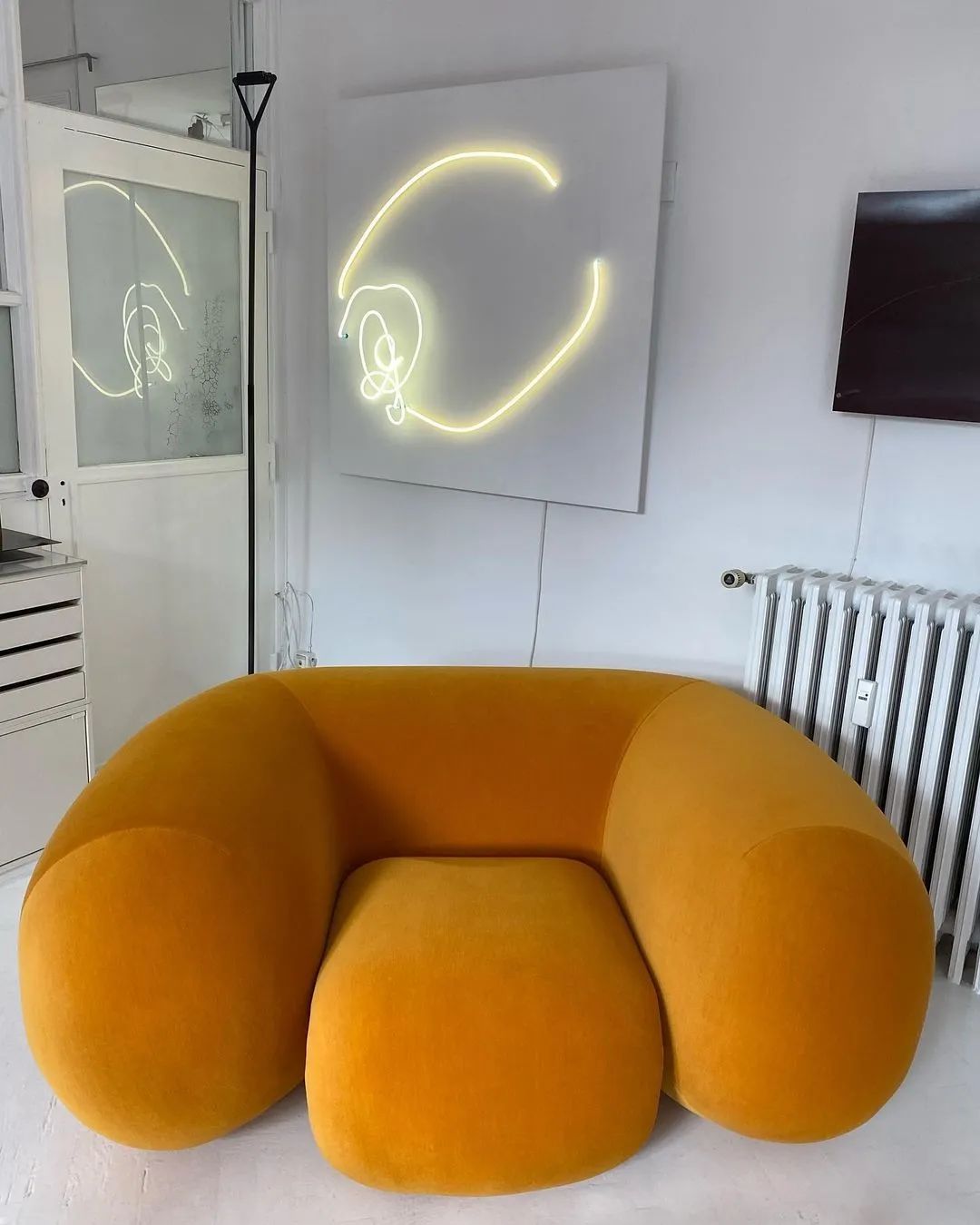 它常采用有机材料进行创作,让作品的雕塑和建筑价值自然流露。与Louise色彩简单的优雅风格不同,Joseph Algieri的设计讲求色彩丰富和概念上的童趣。泡沫膨胀后就像是融化的雪糕,定型后安上圆形的灯泡营造了梦幻的少女感。这不就是女孩们的梦想落地灯吗?Bel&Bel由CarlesBel和Jesus Bel联合创办。两人从巴塞罗那大学毕业后便投身设计行业,凭借着对老爷车的痴迷改造了一把又一把酷炫的座椅。汽车的零件被拆分解构,车轮变为底座,而车尾则被改成霸气的沙发。Carles和Jesus用设计的力量诠释报废豪车的无限艺术潜能。▸Instagram:@belybel_artworks常驻西班牙的米兰设计师Federica Sala于2015年成立了Geometria Da Compagnia工作室,专注产品设计和手作家居饰品。Federica的动态雕塑就像画家在空气中用铅笔随意勾勒的线条,简单但却充满治愈人心的能量。▸头脑风暴