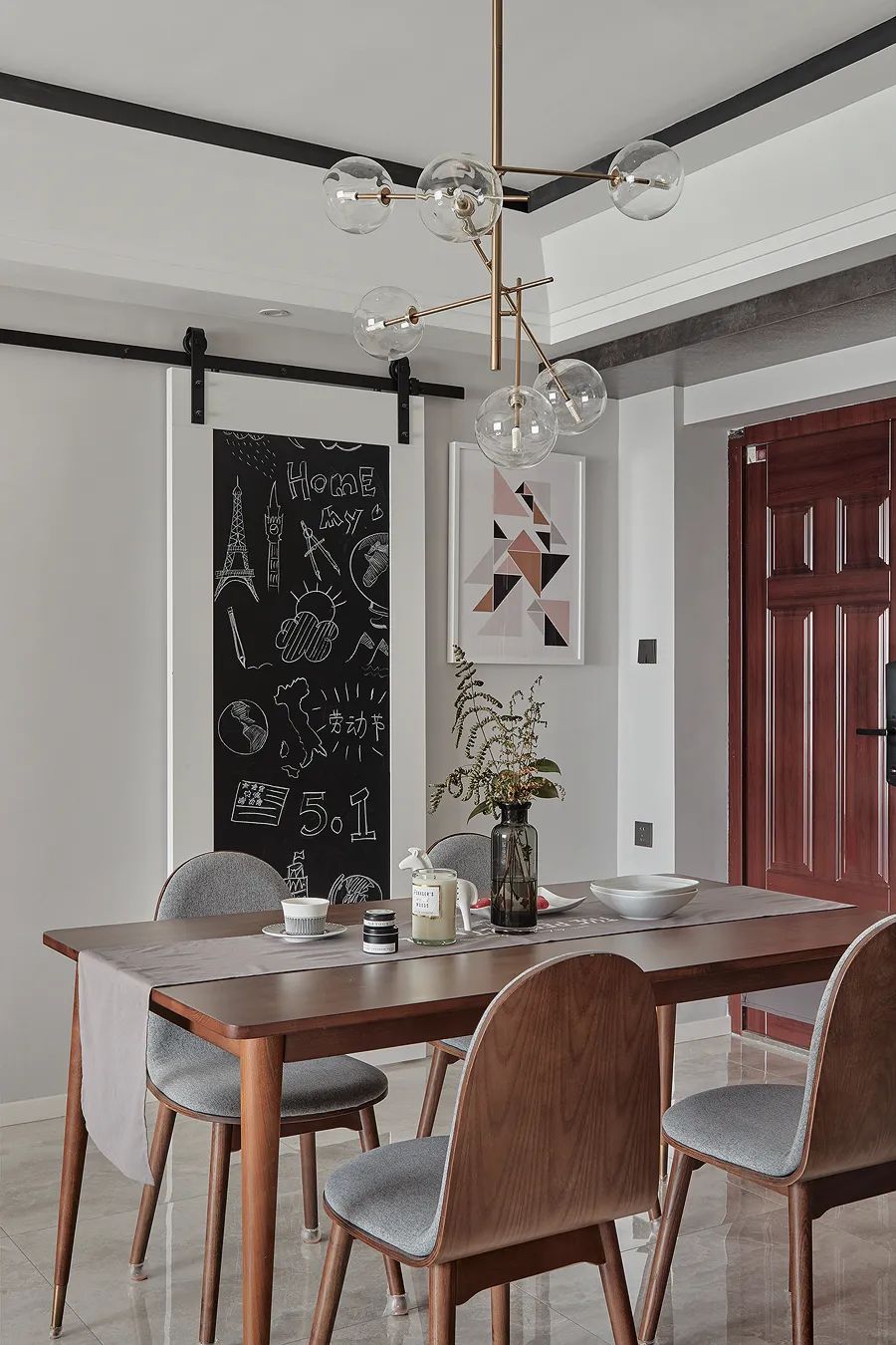 黑墙板的谷仓门别出心裁,可以作为出门前的备忘事项,也可以将美好的灵感做一个呈现,食欲也有所增加呢。