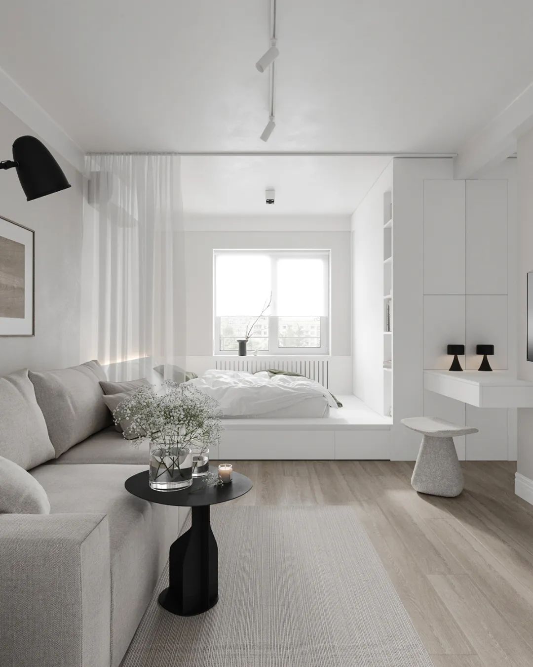 小户型yyds!看人家这套35㎡纯白风小公寓,1㎡都不浪费!