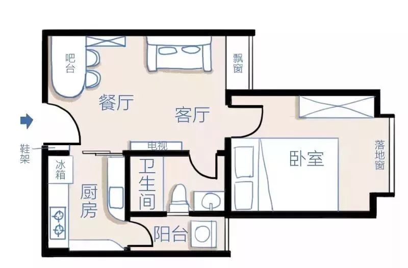 2.搬掉沙发,用飘窗来代替休憩的功能;