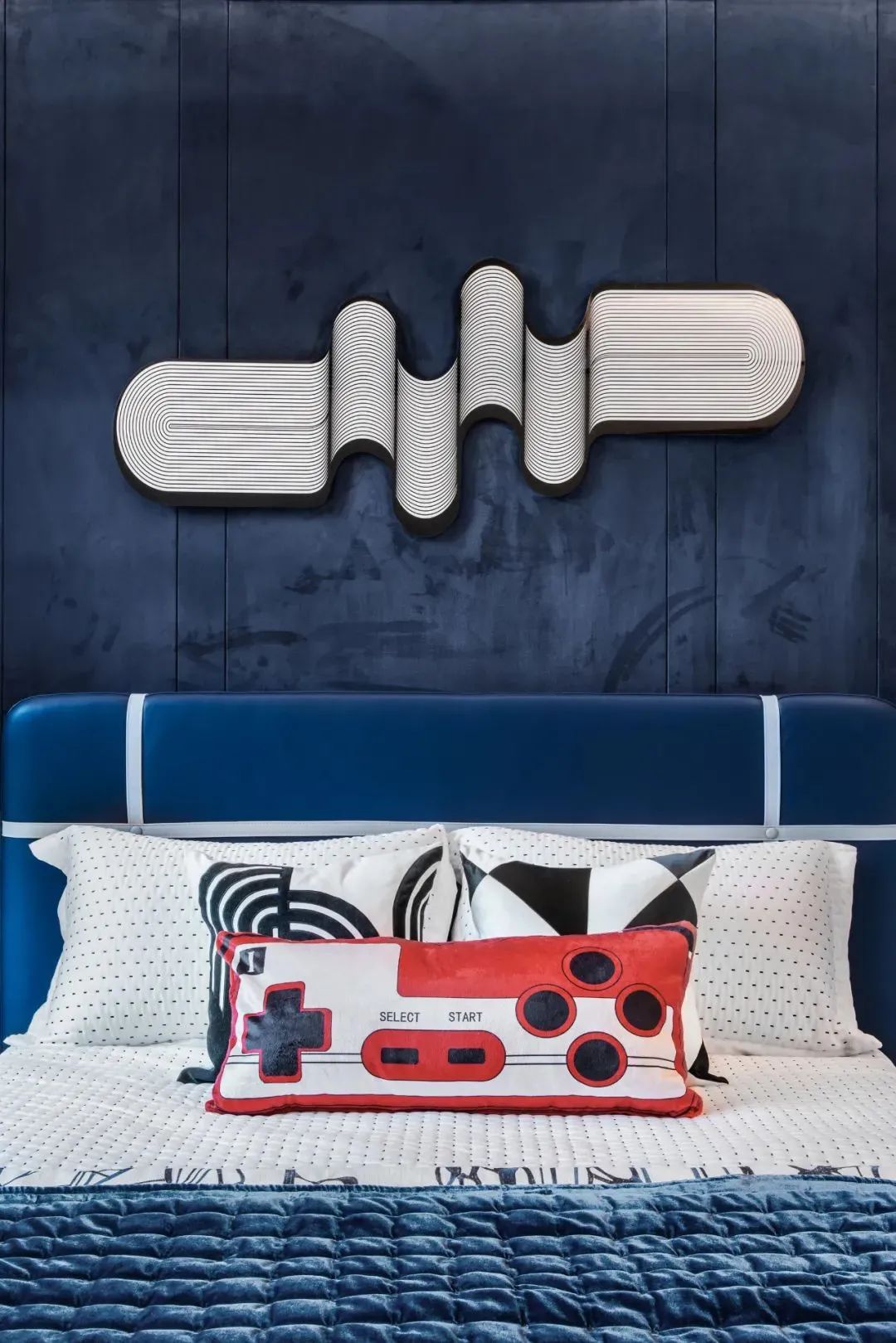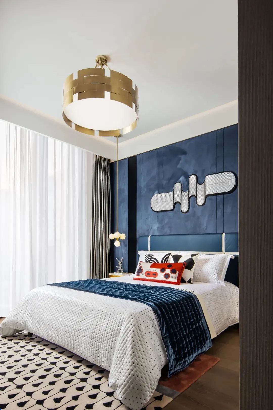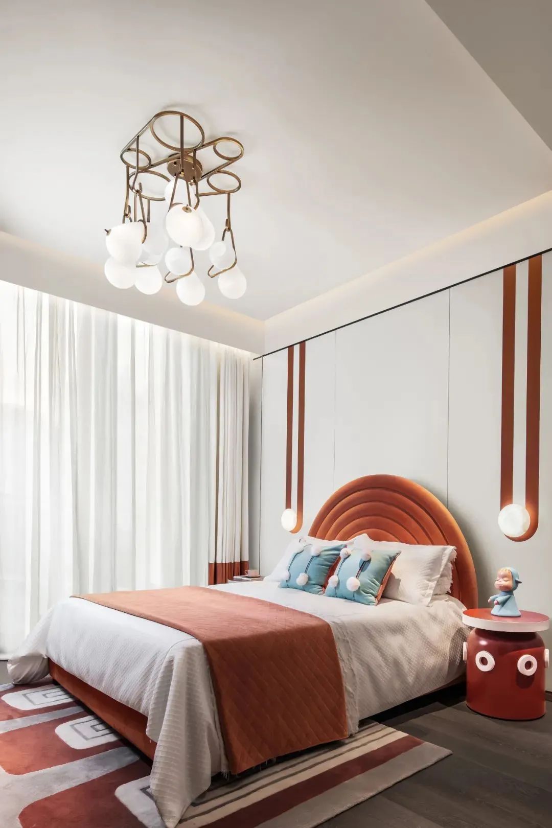 客卧运用了不同的颜色进行区分,其中有橘红色、深海蓝、薄荷绿,颜色饱和度高,色彩明亮艳丽,令人从内心就感受到充实感,提高了居住品质,令人不禁沉浸在这舒适的休憩环境中。