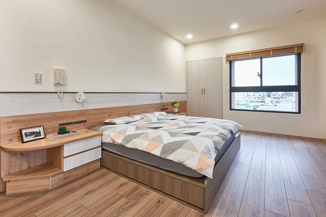 特别选用抽屉式床架,补足吊挂式衣柜之不足