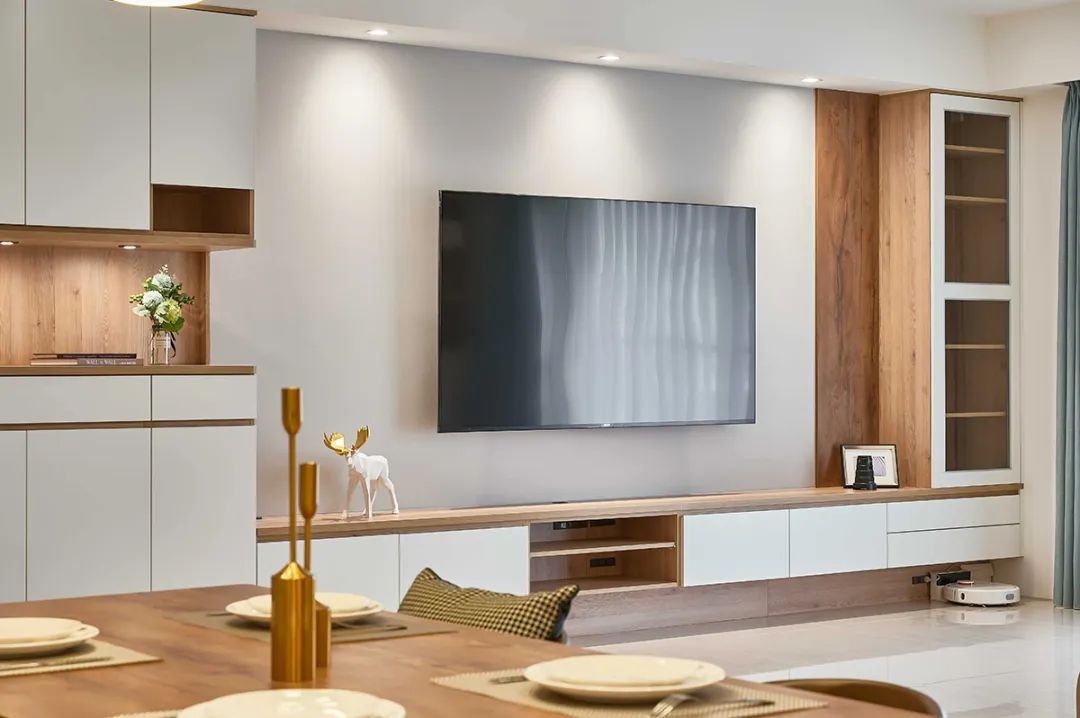 主墙以沉稳灰系与浅木纹理相应