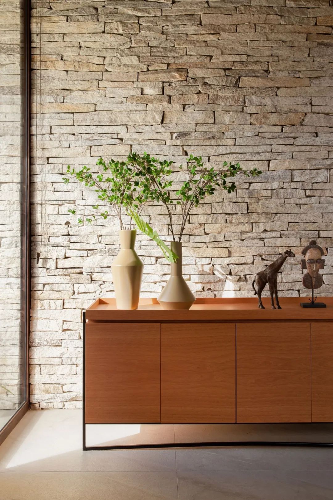 两个现代花盆和众多小雕塑增添了迷人的装饰