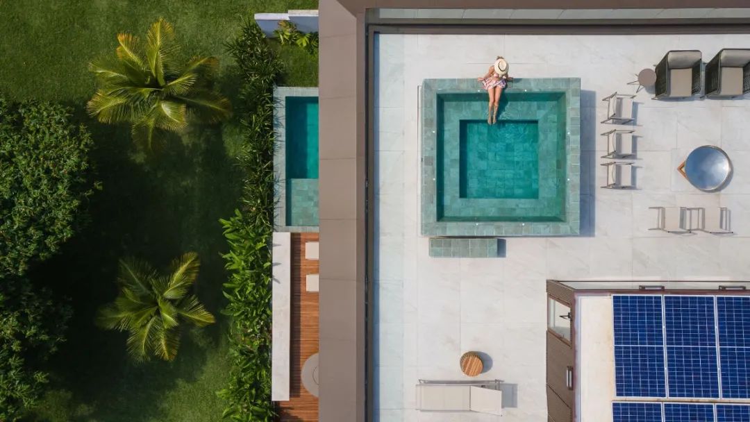 一个小型游泳池与阳光甲板并排排列,用于降温