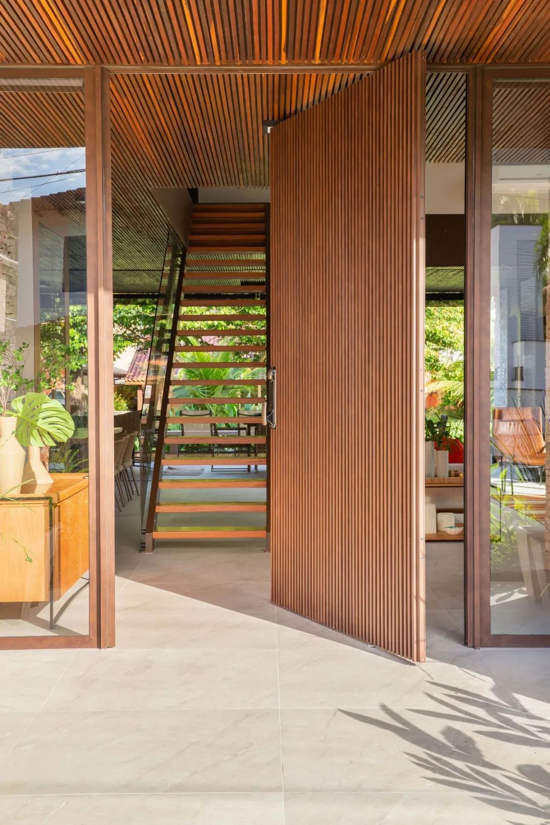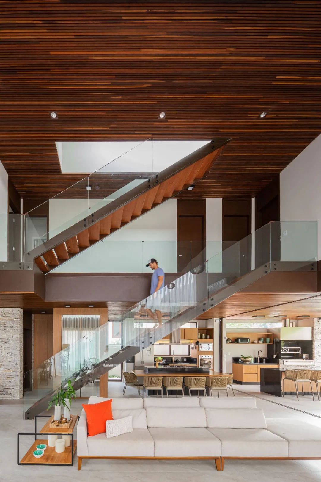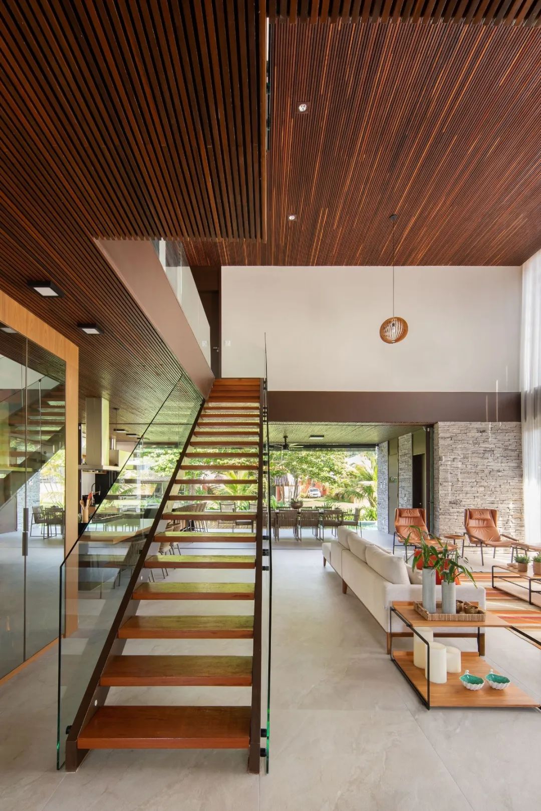 木质天花板设计为高耸的房间增添了热带风情和舒适感