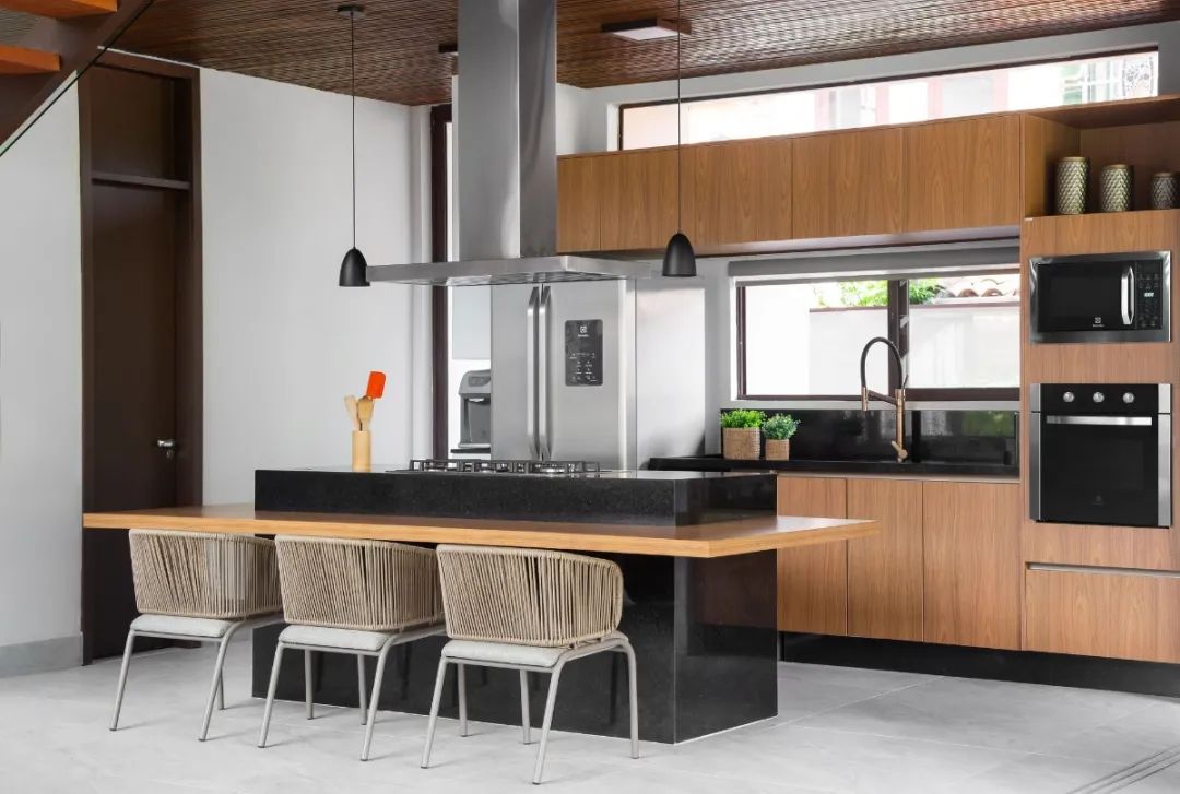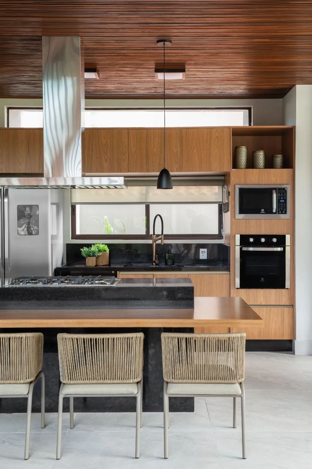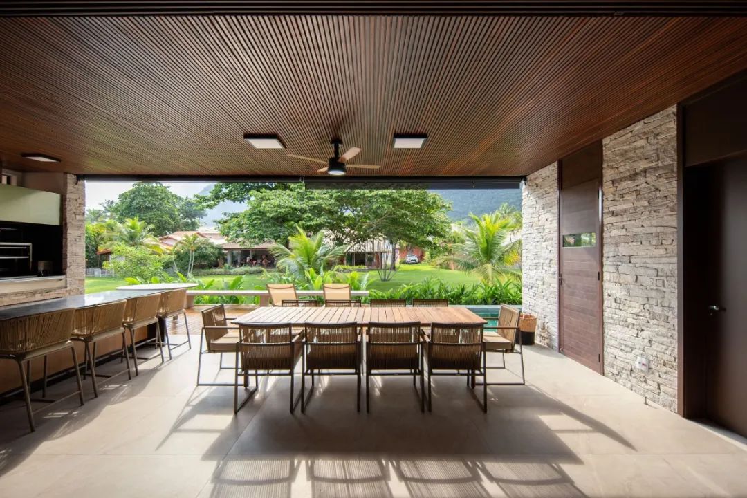 木质天花板设计为高耸的房间增添了热带风情和舒适感