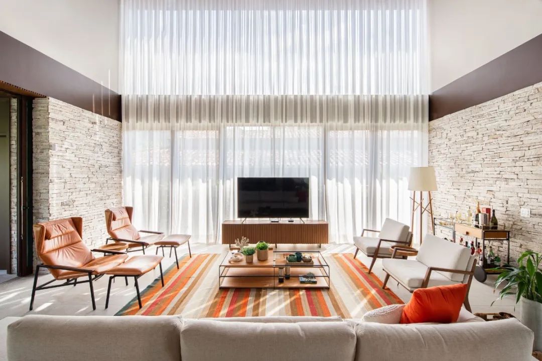 橙色条纹的地毯与沙发上的靠枕相得益彰