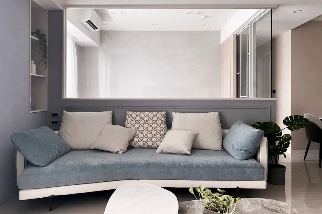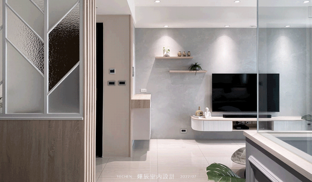流露沉稳气息,搭配内缩9.5 公分的嵌灯,营造温和的洗墙效果
