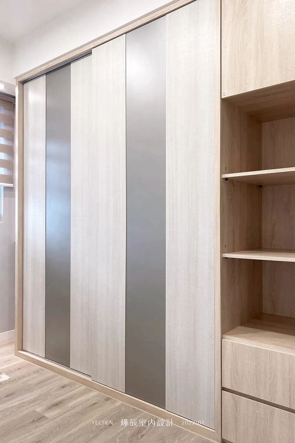 仿金属材质的美耐板+木板的衣柜,注入活泼视感