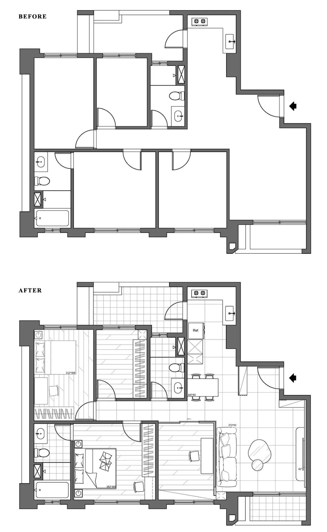 圆弧收边的作法削减锐利感,也带出风雅的细腻质调