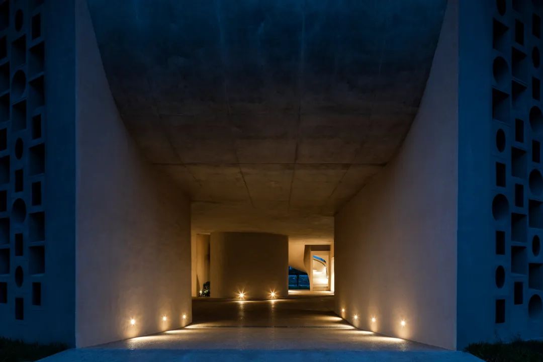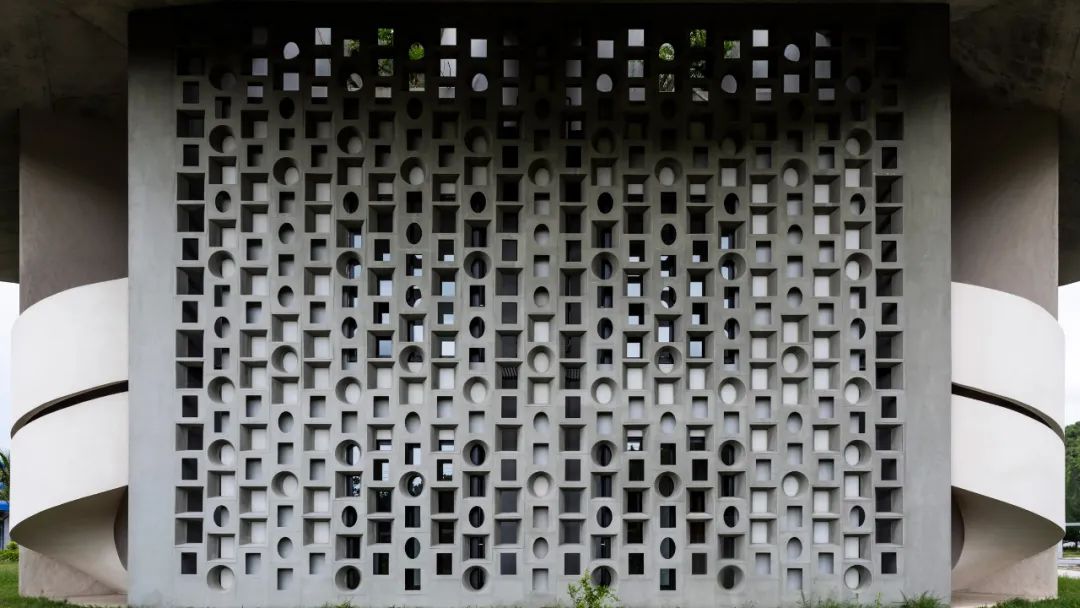 立面上的穿孔砌块部分允许微风自然地为建筑物通风,并在内部表面产生不断变化的光影模式。
