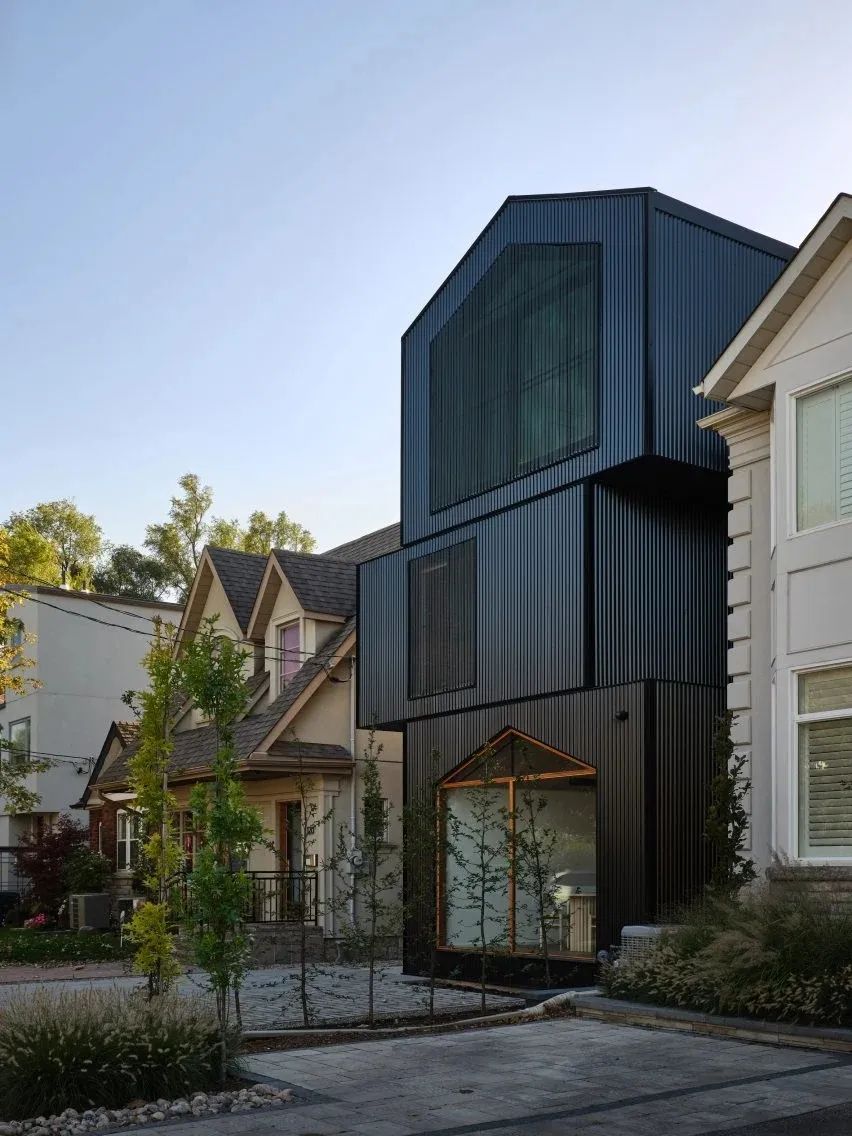 Everden 的房子位于多伦多Cedarvale 社区一块细长的矩形地块上由加拿大公司StudioAC设计住宅采用山墙元素和波纹铝壁板具有“有影响力而又不放纵”的特点