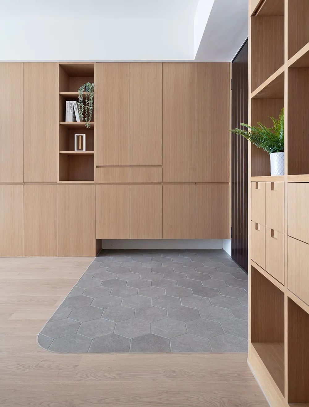 以温润质材抚平门后畸零空间