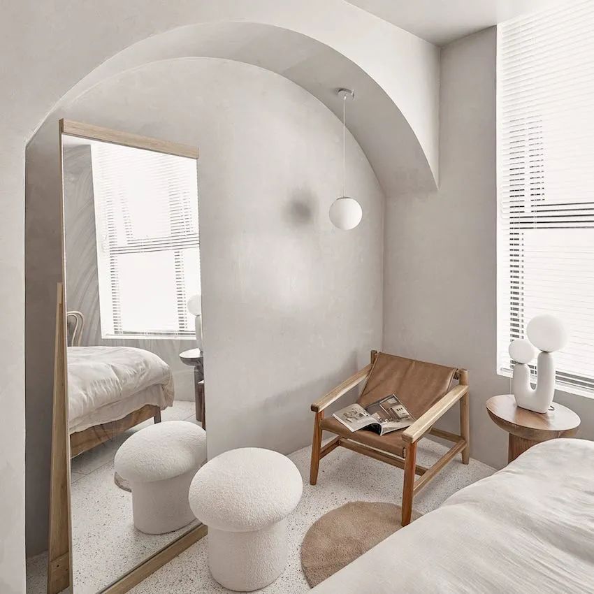 同时于家中各隅角落,运用拱形壁龛筑起主墙端景