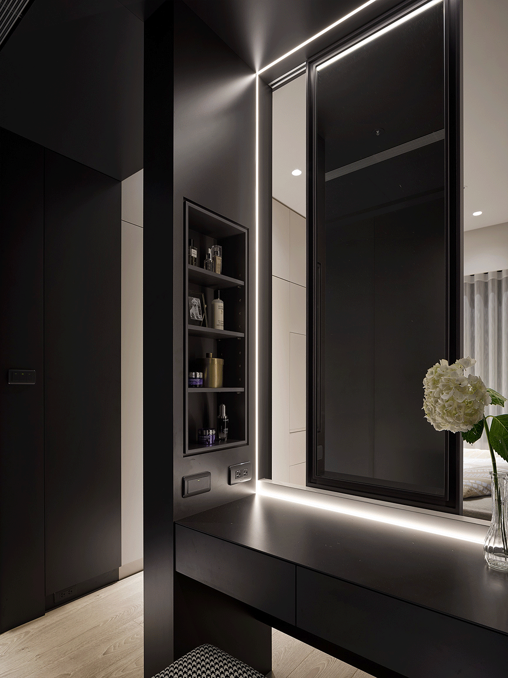 女主人专用的梳妆区于一侧采层叠而上的内凹平台