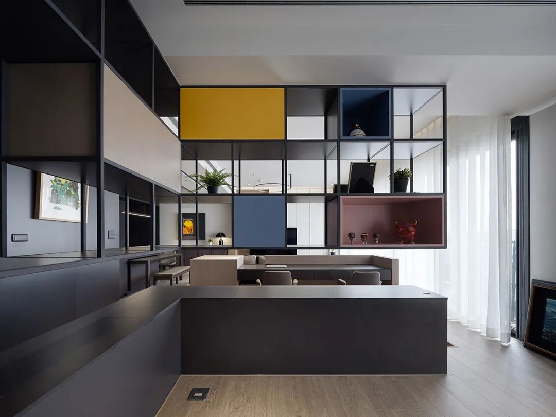 延续俐落轴线,对侧合并收纳的平整立面