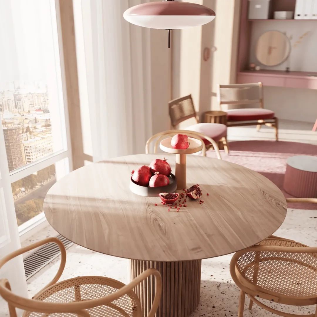 厨房那边,一张圆形餐桌被四把曲线优美的餐椅环绕