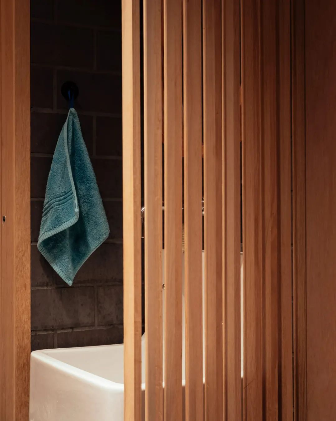 突出的细节包括起居区一侧的浇筑混凝土壁炉