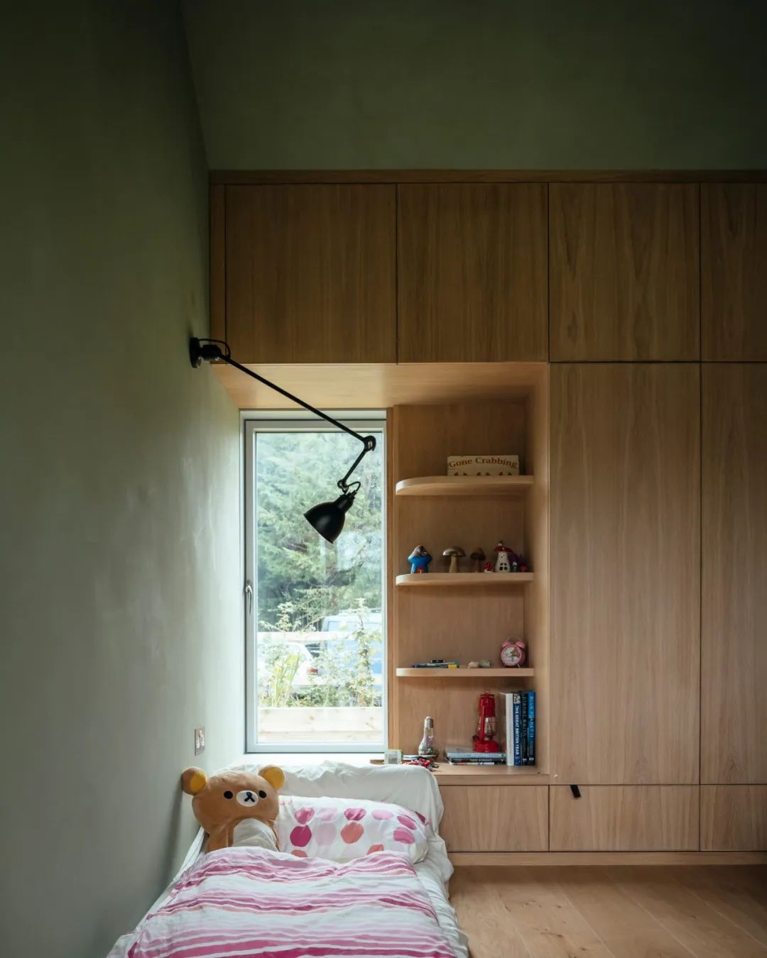 而定制的橡木衣柜则为卧室和杂物间提供了储物空间