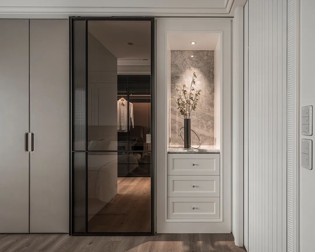 竖立于走道尽头的衣柜则别于其他柜体呈现