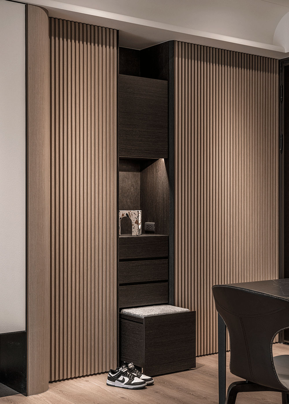 所谓玄关领域,便是利用柜体立面界定而出