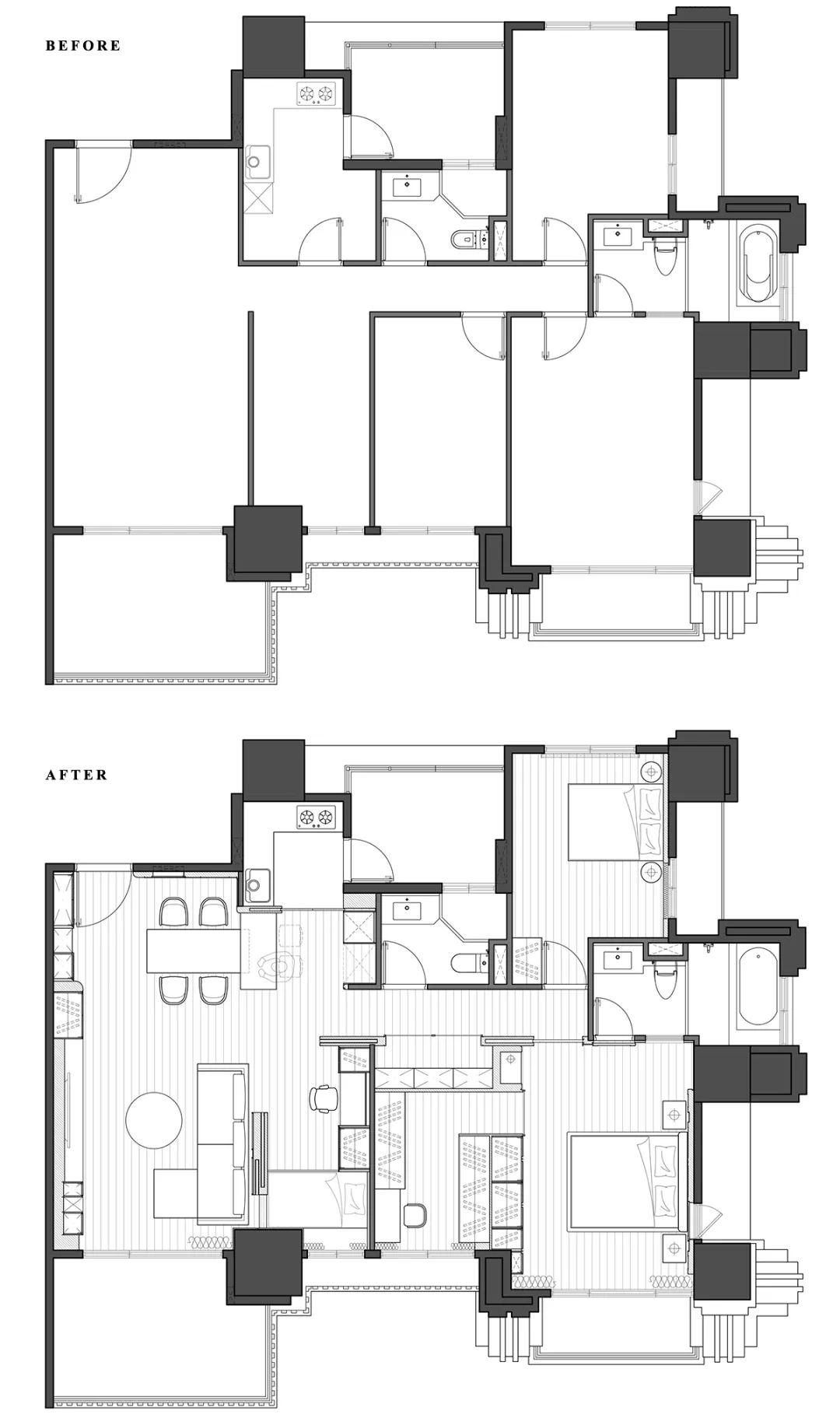 才接续筑起二字型衣柜,营造了仪式感