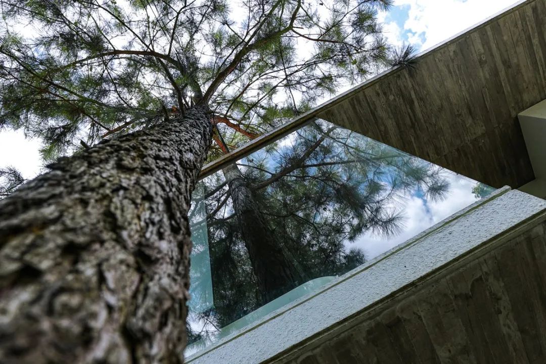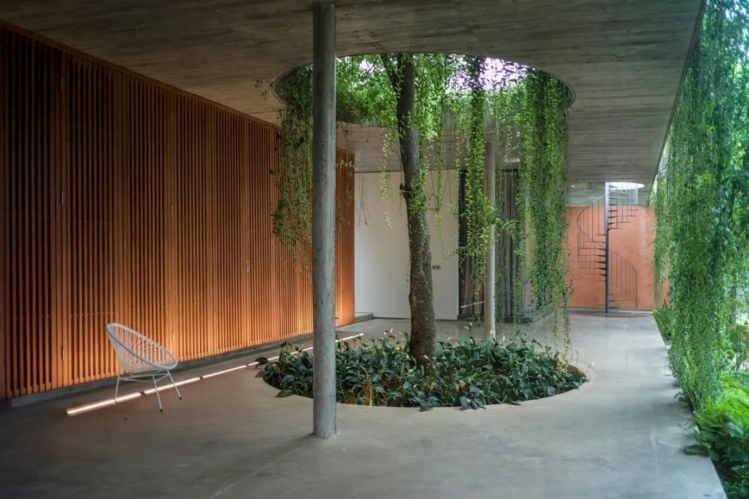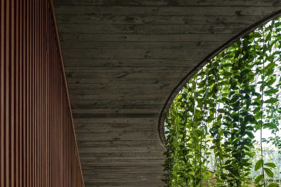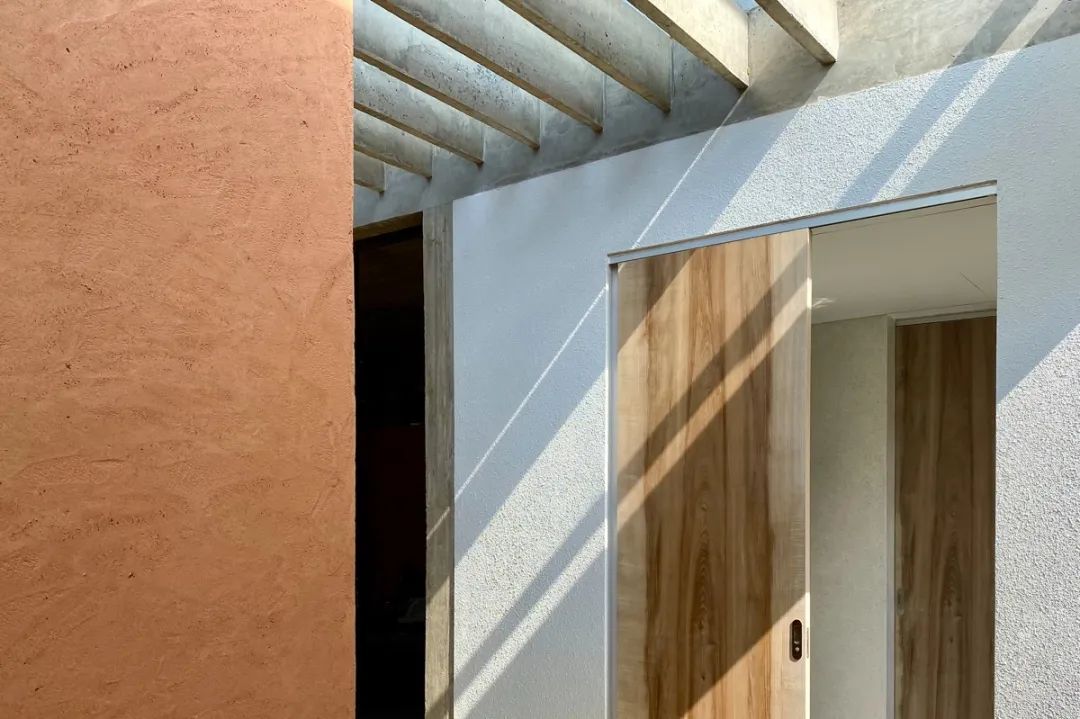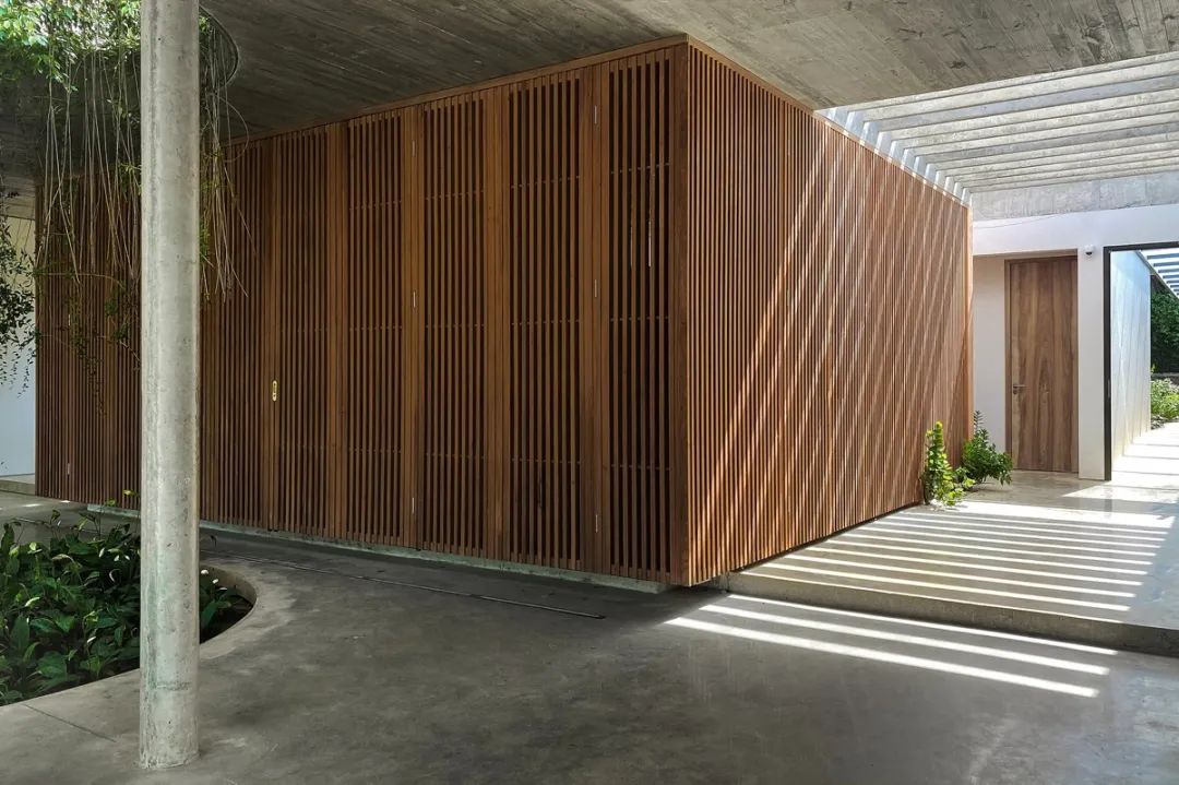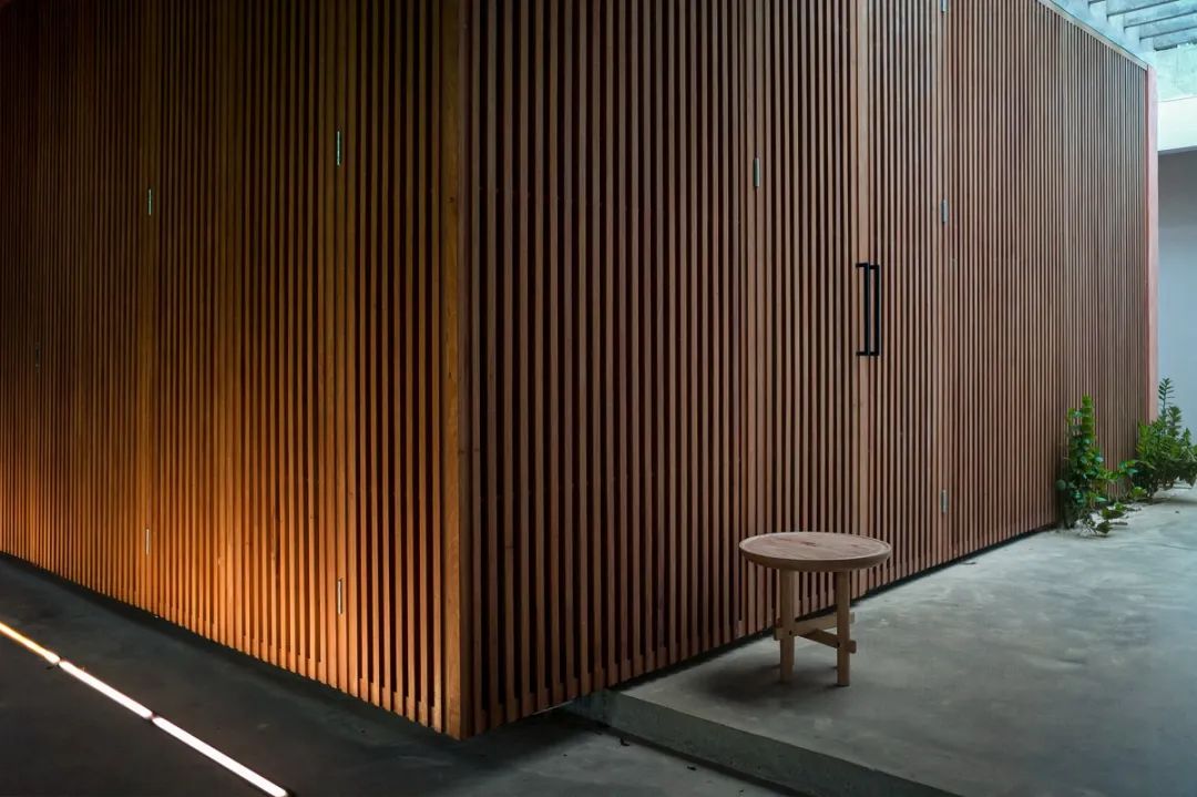 凉爽的混凝土和温暖的木材形成鲜明对比