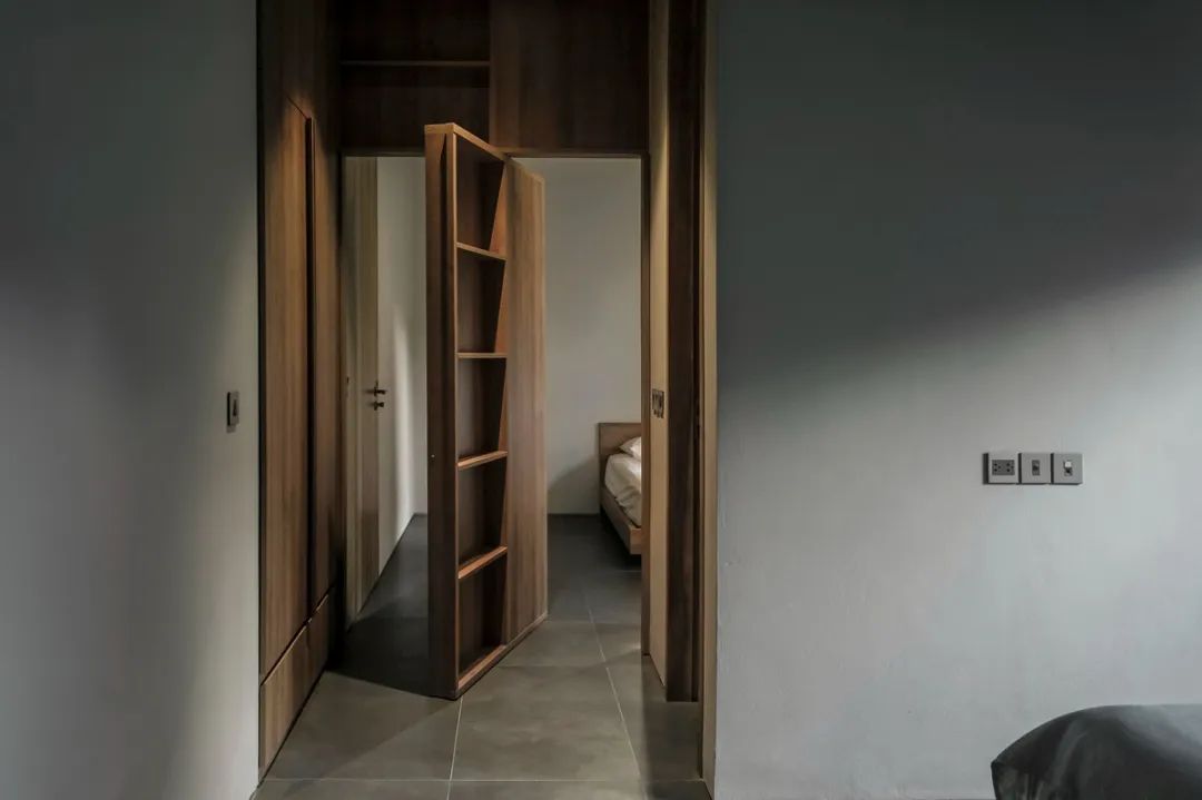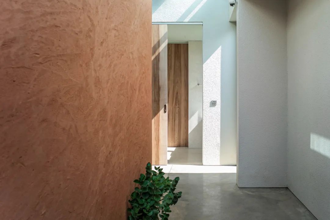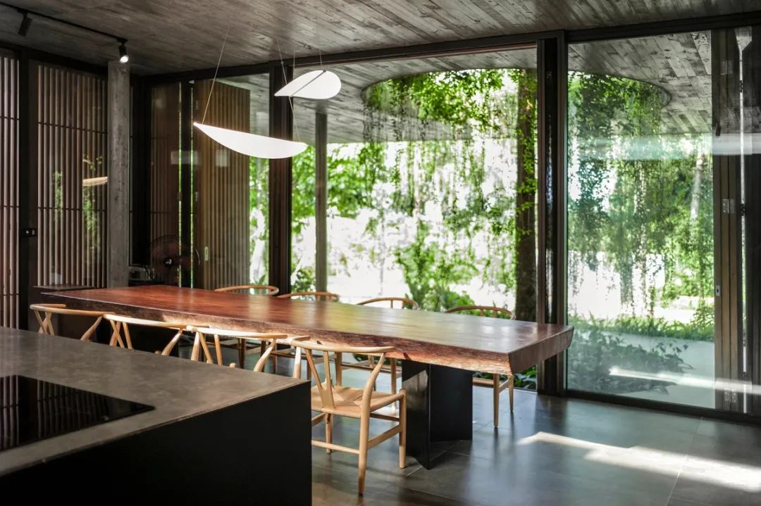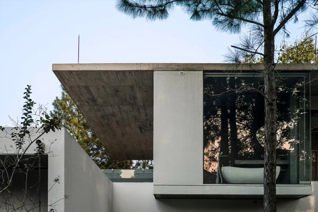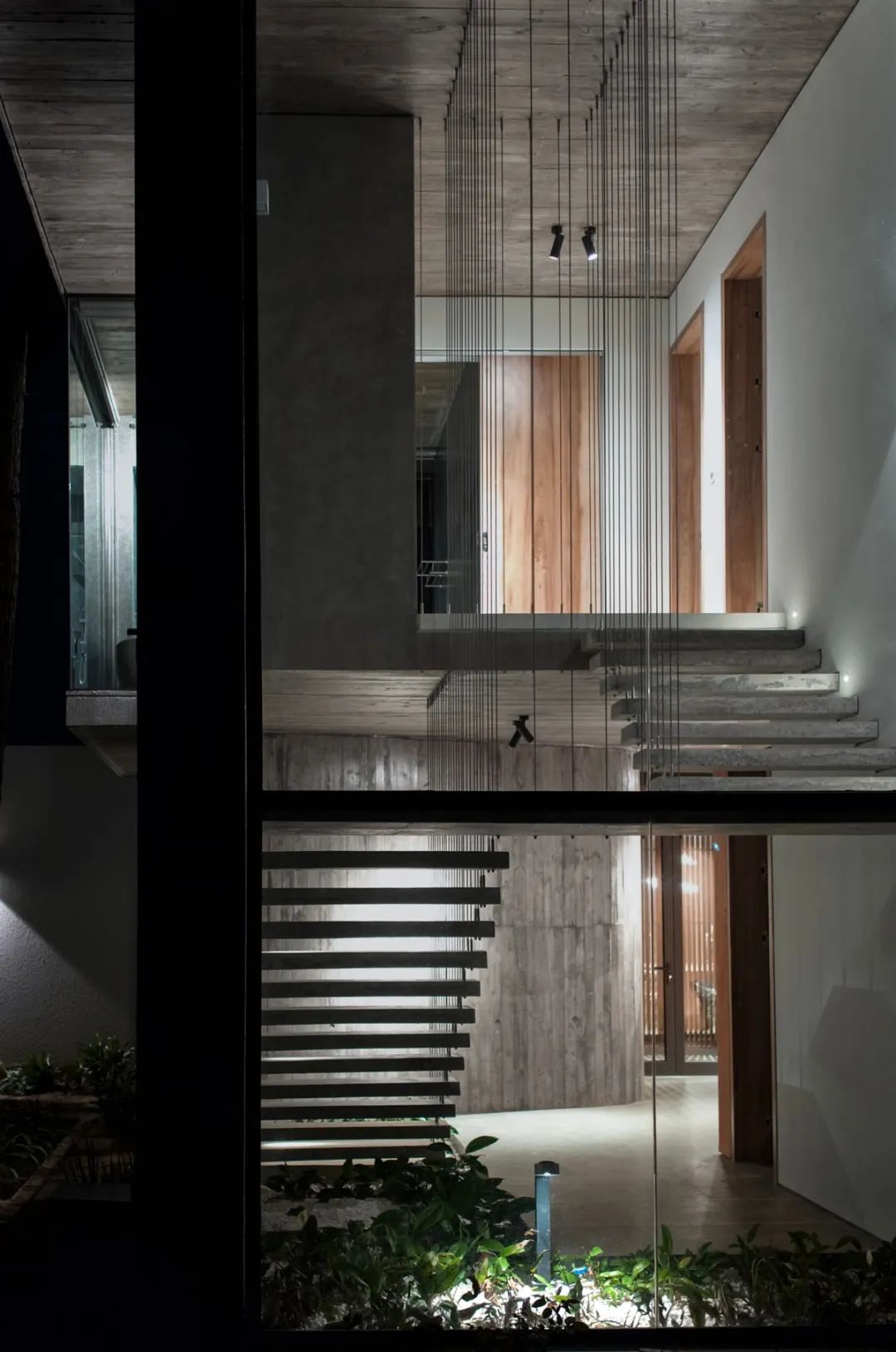 凉爽的混凝土和温暖的木材形成鲜明对比