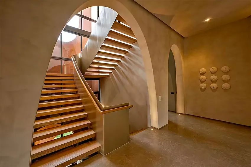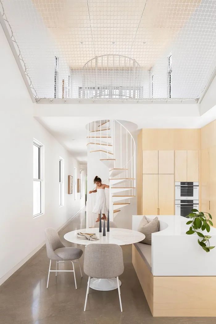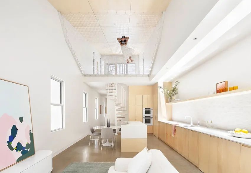 挑高天花与镂空阶梯相辅相成,保有视线通透无阻