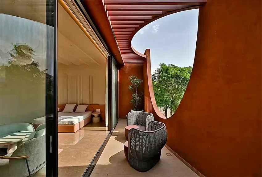 并顺应建筑方向退缩一方露台,舒缓西晒热度