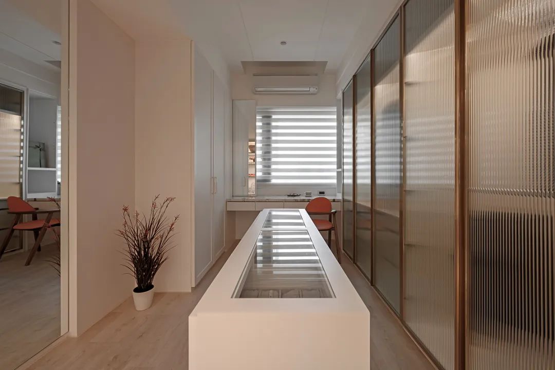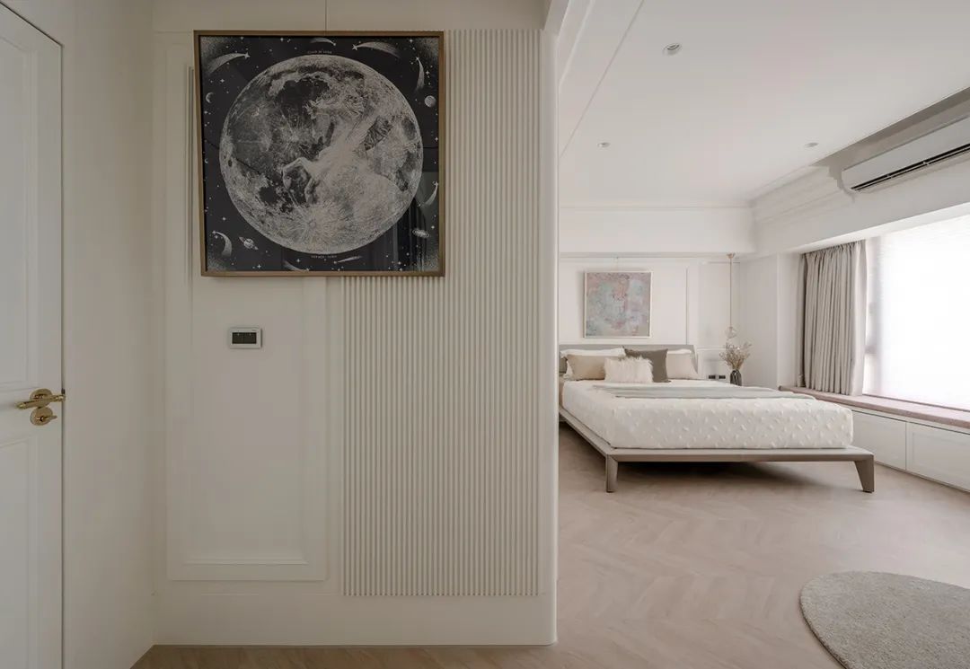 若敞开主卧的门,自大门玄关处即可若隐若现望见这番景致