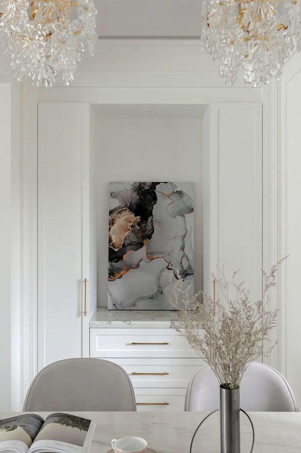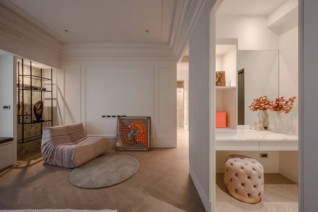 106㎡柔白轻奢宅:烫上一层优雅的雾金古典,我的少女心要炸裂!