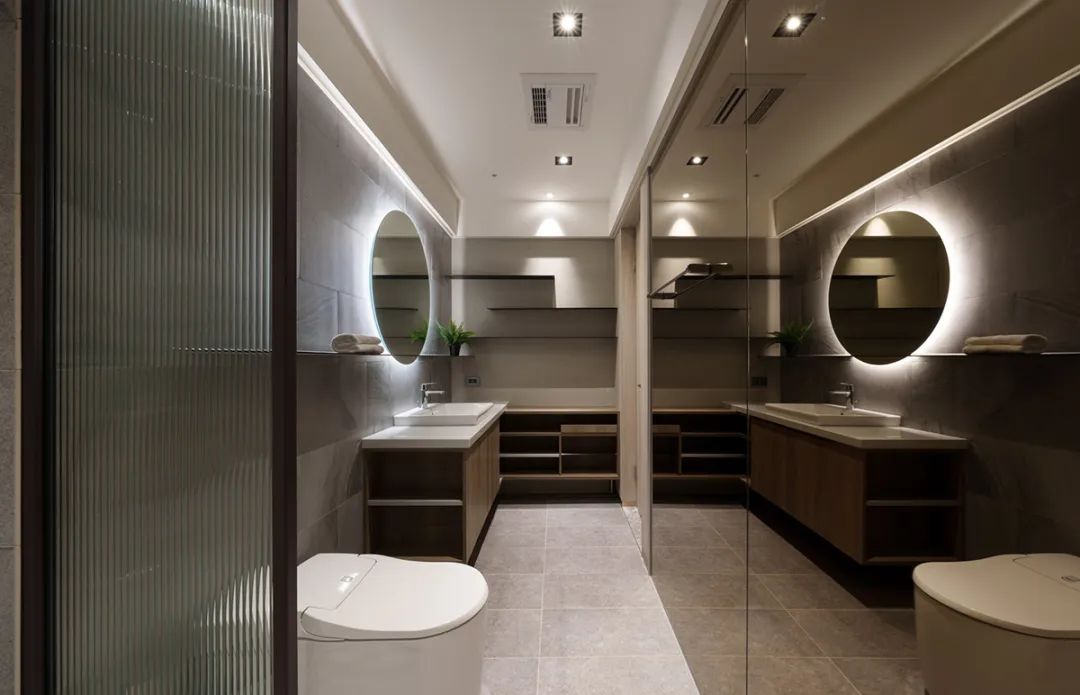 宽阔镜面则提升亮度,玻璃隔屏划分出基础干湿分离的配置