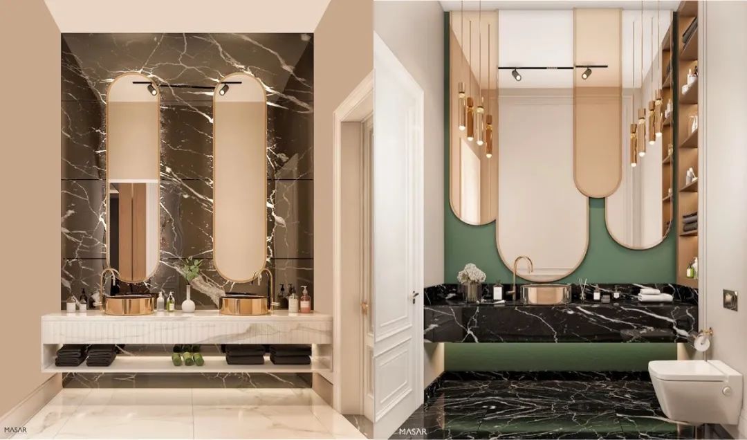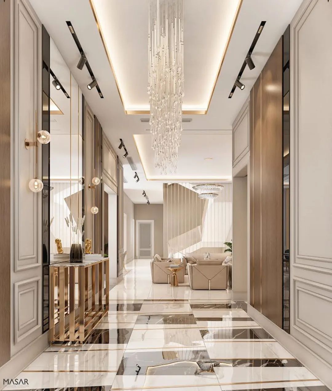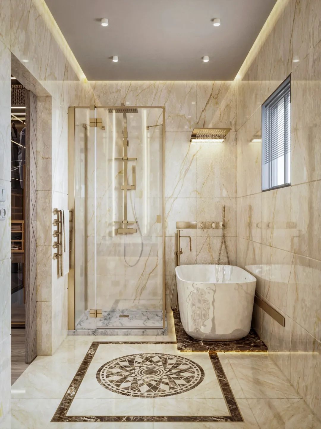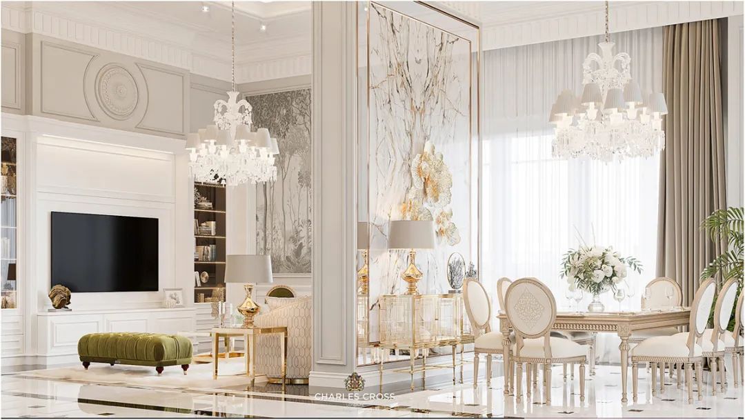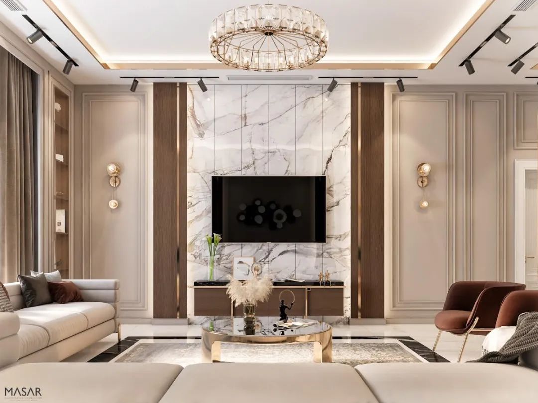 有效地衬托出奢华的金色和白色大理石装饰方案